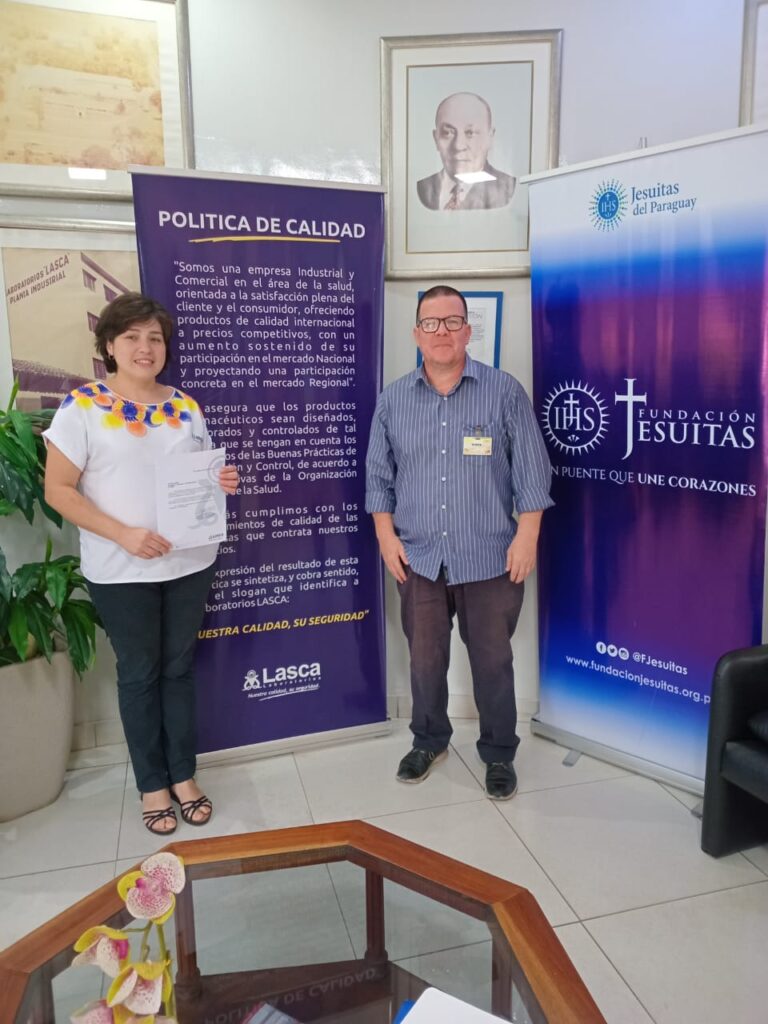 El pasado 28 de enero, en la ciudad de San Lorenzo, Laboratorios Lasca, en representación de Vicente Scavone & Cía., realizó la entrega de un aporte de Gs. 5.000.000 a la Fundación Jesuitas, como parte de las acciones que acompañan la celebración de los 15 años de labor social que la institución conmemorará el próximo 7 de mayo.